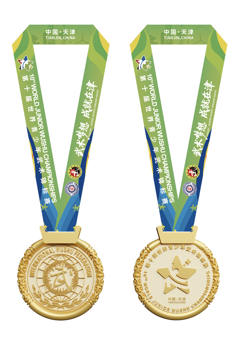 奖牌以天津“哪吒”文化为脉络,采用乾坤圈镂空设计,兼具神话意象与赛事标识。